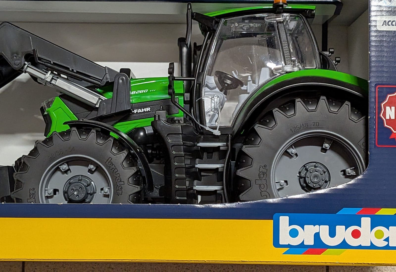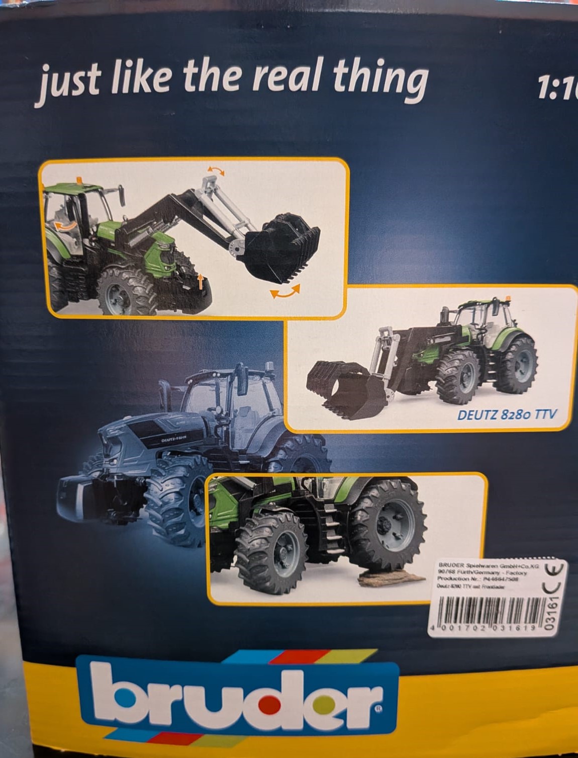 Questo Deutz-Fahr 8280 TTV con caricatore frontale è un trattore dettagliato e di alta qualità. Le funzioni realistiche e funzionanti assicurano un divertimento di gioco ottimale.